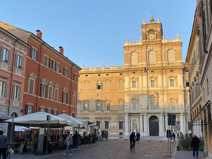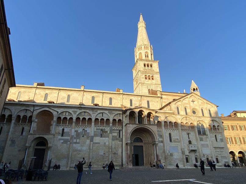 Kurz nach 16.00 Uhr sind wir nach 707 Kilometern an unserem heutigen Tagesziel in Modena angekommen. Modena hatten wir uns ausgesucht, weil man diesen Namen immer liest, wenn man von Norden über den Brenner kommt und wir da noch nie waren. Kann man ja mal machen, wenn es auf der Strecke liegt. Und was soll man sagen - unsere Ankunft erfolgte natürlich bei Sonnenschein! Unser Hotel liegt nur ca 1 Kilometer von der Innenstadt entfernt und so haben wir uns zu einer kurzen Stadtbesichtigung aufgemacht. Auch Modena ist ein historischer Ort mit einer sehr schönen und vor allem gepflegten Altstadt, vielen Sehenswürdigkeiten und historischen Gemäuern. Einige Teile der Altstadt gehören zum UNESCO-Weltkulturerbe. Man merkt auch deutlich, dass der Norden Italiens wohlhabender ist als der Süden, viele Boutiquen und teure Geschäfte. Schließlich kommt ja der Maserati auch aus Modena und Lamborghini und Ferrari von gleich um die Ecke…