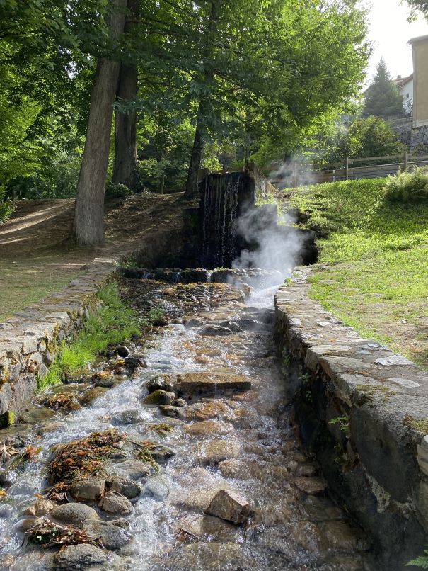 Unser Start heute Morgen um 9.00 Uhr lief ganz gut. Wir hatten gestern schon alles Wesentliche verstaut, so dass es nach dem Frühstück sofort losgehen konnte. Unsere Tour führte uns heute direkt zu den Pyrenäen und bis nach Ax Les Thermes. Die Straße sind sehr gut ausgebaut und die 200 km waren Weg wie nichts. Das Quartier ist ein wenig abenteuerlich, aber mitten in der Altstadt dieses Badeörtchens gelegen. Hier gibt es heiße Quellen und man tut gut daran die Schilder zu lesen, ehe man die Hände unter das vermeintlich kühle Nass hält. Das Wasser ist unvermischt wirklich brühend heiß, um genauer zu sein, bis zu 77 Grad Celsius! Der Ort selbst ist ein altes Städtchen mit engen Gassen, kleinen Geschäften und Cafés. Der Markplatz ist mit den typischen Platanen versehen und lädt zum Verweilen ein. Die Berge um uns herum liegen eher im leichten Nebel, die Luftfeuchtigkeit ist sehr hoch und die Temperaturen liegen auch heute trotz der höheren Lage bei 30 Grad. Gut, dass wir warme Sachen eingepackt haben…😉