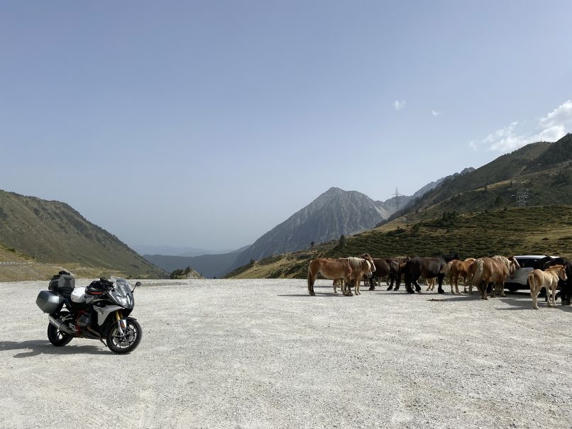 Auch heute wieder ging es pünktlich um 9.00 Uhr los. Das Motorrad war schnell gepackt - langsam haben wir Routine. Ein letzter Blick - nichts vergessen, alles fest, los gehts. Unsere Tour führte uns von Ax les Thermes über den Col de Puyrmorens um Andorra herum nach La Seu d‘ Urgell, von dort ging es in einem ordentlichen Umweg am Rand der Serra de Cadí auf absolut untergeordneten Straßen entlang nach Sort und dann weiter nach Vielha. Die Straßen sind super ausgebaut, kein Schlagloch und Kurven über Kurven. Eigentlich ein fantastisches Einschwingen - rechts, links, rechts, links, Kehre und das Ganze wieder von vorn über viele Kilometer… Für das gleichmäßige Abfahren der Reifen ist also gesorgt. Es ist erstaunlich wenig Verkehr, kaum ein Auto, kaum Touristen, ab und zu mal ein LKW in der Kehre…