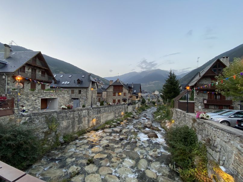 Vielha ist ein touristisch geprägter Wintersportort mit einer ganz anderen Architektur als in Frankreich. Massive Häuser aus Naturstein, kein morbider Charme, alles sehr gepflegt und oft perfekt renoviert. Da sah es in Ax les Thermes ganz anders aus…