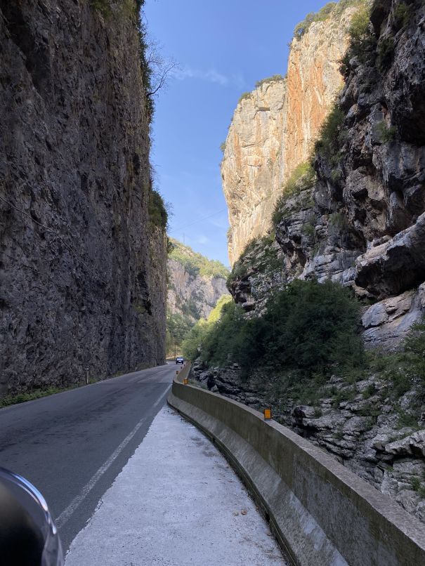 Die Aussicht ist an jeder Ecke grandios, steile Felsen, ähnlich den Dolomiten, steile Täler und Hänge und die Straße oft am Abgrund klebend. Kleine Tunnel wie am Gardasee - toll! Kurz vor Vielha dann ein paar Moppeds und wenige Radfahrer.