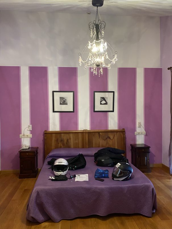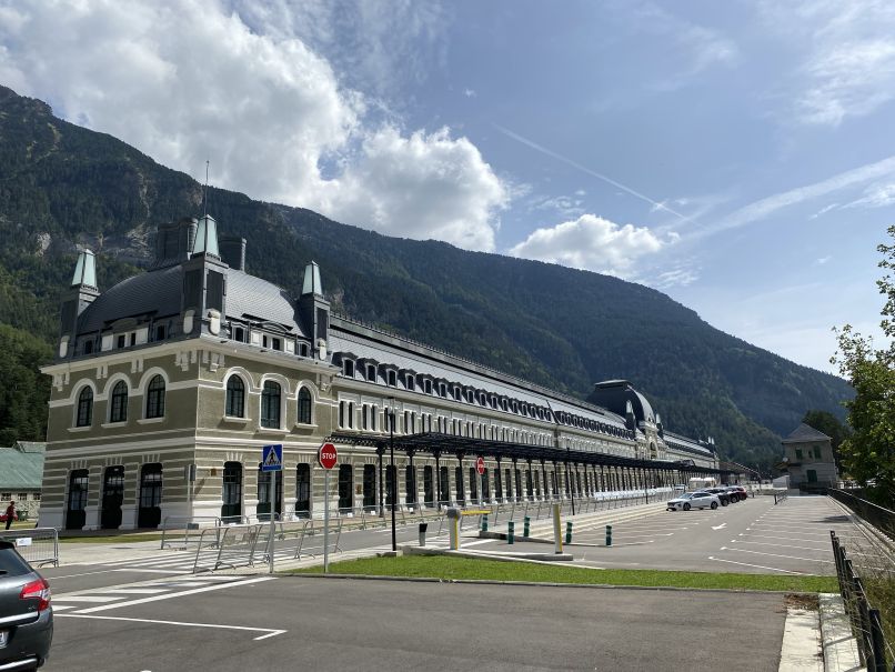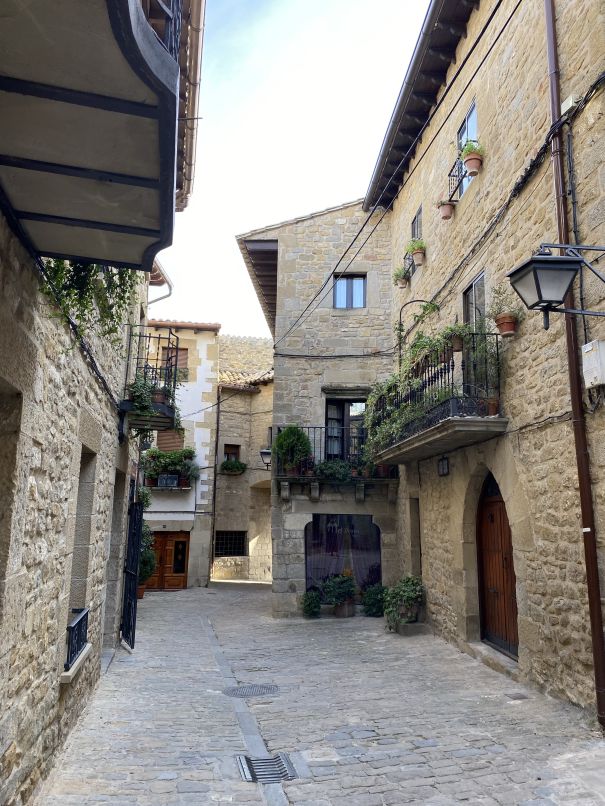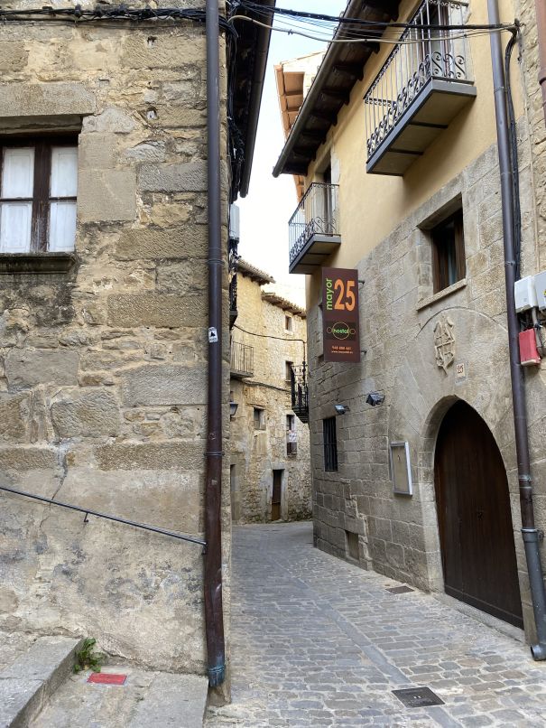 Von Vielha ging es in Richtung Süden durch den super ausgebauten Tunnel und dann weiterhin Richtung Westen über die N 260 über viele Kurven nach Ainsa. Da ab dort die Strecke ehe bequem ausgebaut schien, sind wir kurzerhand über eine deutlich untergeordnete Straße weiter südlich der Hauptstraße abgebogen und über ca. 60 km kurvenreiche Nebenstraßen gefahren. Es begegnet einem kaum ein Auto, vielleicht noch ein Motorrad, das diese Route zufällig gefunden hat. In Jaca angekommen, haben wir noch einen Abstecher nach Canfrank gemacht - den höchst gelegenen Bahnhof in der Pyrenäen. Warum das Konzept des vor ca. 100 Jahren errichtetem Komplexes nicht aufging, kann man im Wikipedia nachlesen. Seit 2023 ist es ein Luxushotel und man wird sehen, ob sich das Konzept in der Gegend durchsetzen wird. Kurz ging es von Jaca über die N 330 und N 240, um kurz darauf über weitere 40 km Straßen zu fahren, die dann tatsächlich auch schon geteert waren…😉, allerdings muss das vor 1950 passiert sein! Nach ordentlich Geschaukel und mit vielen grandiosen Ausblicken sind wir nach genau 359 km in Sos del Rey Católico angekommen - ein historischer Ort mit viel Geschichte und beschaulichen Gässchen.Das Hotel ist ganz nett, ziemlich neu und man versteht hier kein Wort Englisch, was die Investition in den Crashkurs in spanisch wiederum bezahlt macht…holá!