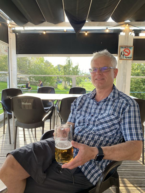 Pünktlich um 9.00 Uhr ging es weiter. Das Hotel bot kein Frühstück an, so dass wir etwas improvisieren mussten. Die Tour sollte uns heute weiter durch die Berge, aber langsam in Richtung Küste führen. Unser Ziel war Rubayo, irgendwo zwischen Bilbao und Santander. Das Navi war etwas eigenwillig und änderte aus uns bis jetzt nicht ersichtlichen Gründen die Tor, so dass wir nach beschaulichen 200 km mitten in Bilbao und seinen unzähligen Vororten landeten. Die unfreiwillige Stadtrundfahrt führte uns zwar durch die Altstadt, aber bei 35 Grad im Schatten und freitäglicher Rushhour hatten wir keine Lust auf eine Stadtbesichtigung. Bis wir uns da wieder rausgefunden und den richtigen Weg über die Landstraße hatten, dauerte es eine gute Weile… Aber der Blick immer wieder aufs Meer hat dann doch für die Strapazen entschädigt. Kurz nach 5 und ca. 360 km hatten wir dann unser Quartier gefunden, ein nettes Hotel mit ländlichem Charme und geräumigem Zimmer und sogar mit Meerblick, wenn auch noch ganz schön weit weg… Das Mopped hat ein nettes Plätzchen unter dem Dach. Klamotten ausgepackt, Dusche und ab zum Essen in der Nähe. Schnell noch die durchgeschwitzten Klamotten gewaschen und auf dem Balkon aufgehängt. Kurz darauf zog ein Gewitter auf, was unsere Vorstellungen vom Wäschetrocknen über Nacht ganz fix zunichte gemacht hat! Aber auf dem Weg zum Lokal haben wir einen Waschsalon entdeckt. Also fix die Wäsche geholt und für 3€ in den Trockner gesteckt, perfekt! Es ist schon ganz nett, bei diesen Temperaturen wieder frische Moppedunterwäsche anziehen zu können… Fotos gab es heute irgendwie nicht viele, aber man kann ja auch nicht ständig anhalten und wenn das Licht aus der falschen Richtung kommt, wird es auch nichts… Der Camino hat uns auch heute wieder begleitet, aber wir könnten uns nicht vorstellen, diesen Weg zu Fuß zu gehen. Oft führt er auch hier direkt an der Fernverkehrsstraße entlang und das bei diesen Temperaturen - nein danke!