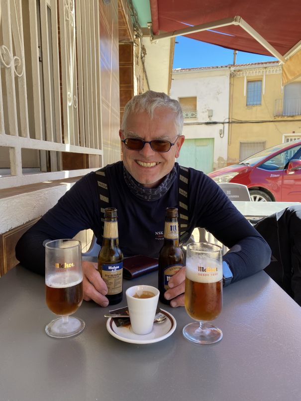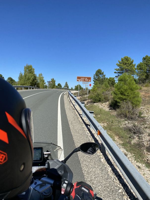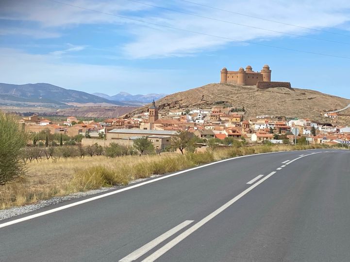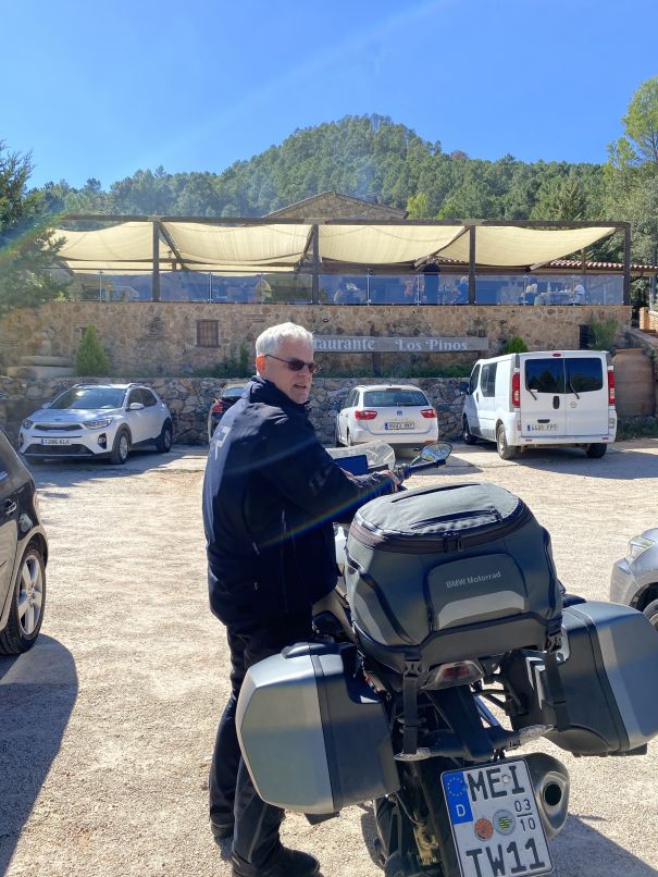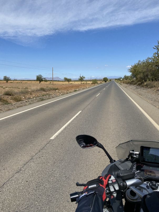 Heute ging’s von Guadix bei 9 Grad Starttemperatur durch die Sierra Nevada weiter in Richtung Norden - wir müssen ja mal ein Stück voran kommen. Unser Ziel war heute Higueruela und wer das auf der Landkarte findet, der kriegt einen Sangria…😉 Dieser Ort mit ca. 1200 Einwohnern (in Worten eintausendzweihundert…) liegt in einer Hochebene auf etwa 1100 m Seehöhe, hat eine Kirche, 3 Kneipen und 1 Hotel. Umgeben von Weinbergen, Olivenhainen, Obstbäumen und Pinienwäldern liegt es wirklich im Nirgendwo, hat aber einen Anschluss an das Autobahnnetz… , die wir als Biker natürlich nicht benutzen!