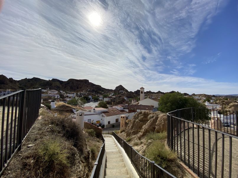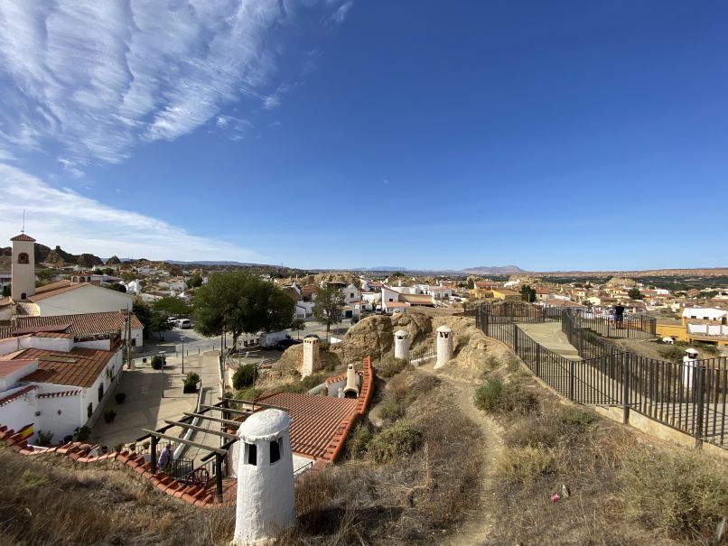 Unser heutiges Ziel war die Stadt Guadix. Auf ca. 920 m Seehöhe gelegen, ist sie für ihre Höhlen bekannt, die zu Wohnzwecken genutzt werden. Es ist ein eigenes kleines Stadtviertel, in dem diese Höhlen in den Felsen gegraben sind und die auch heute noch fast vollständig bewohnt werden. Eine durften wir uns anschauen und war echt gemütlich eingerichtet!