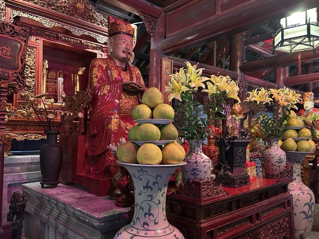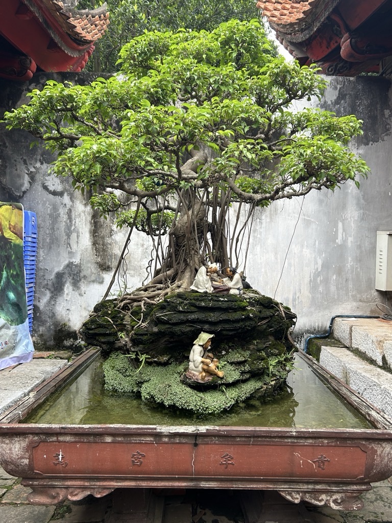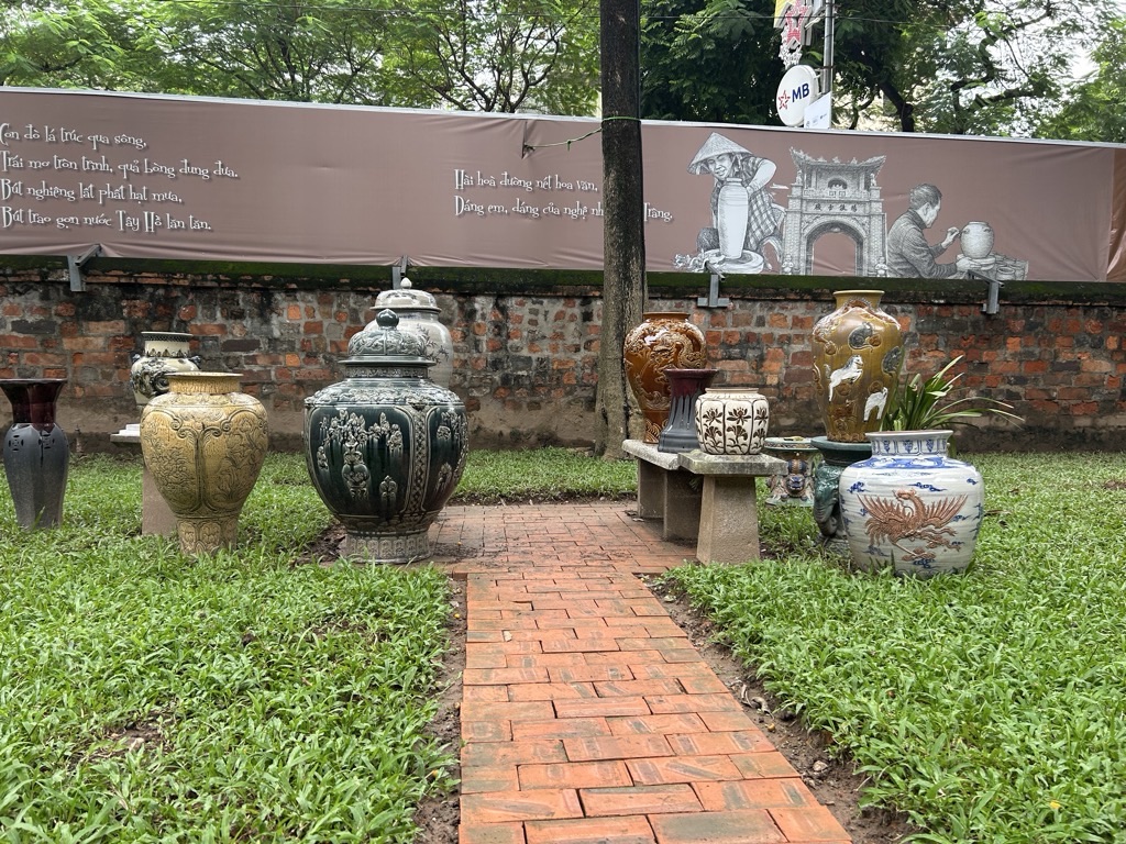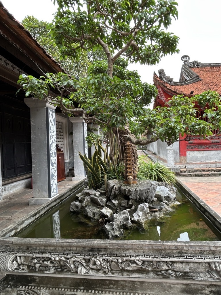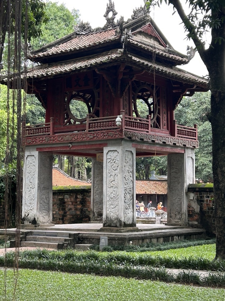 Der letzte Kulturpunkt für heute war der Besuch des Literaturtempels, ebenso mitten in der Stadt gelegen. Hier wirkte Konfuzius in seiner Schule und seine Nachfolger gründeten die erste vietnamesische Universität. Mehrere Innenhöfe dieser Tempelanlage und ein grüner Garten mit Keramiken runden das Bild ab. Noch heute kommen viele Studierende und Schüler hierher, um für eine gute Prüfung zu beten und für eine bestandene Ausbildung zu danken. Die Räucherstäbchendichte insbesondere im letzten Gebäude war schon enorm, die Informationsfülle war für einen Tag mehr als ausreichend und so haben wir uns ein Plätzchen zum ausruhen gesucht…😀
