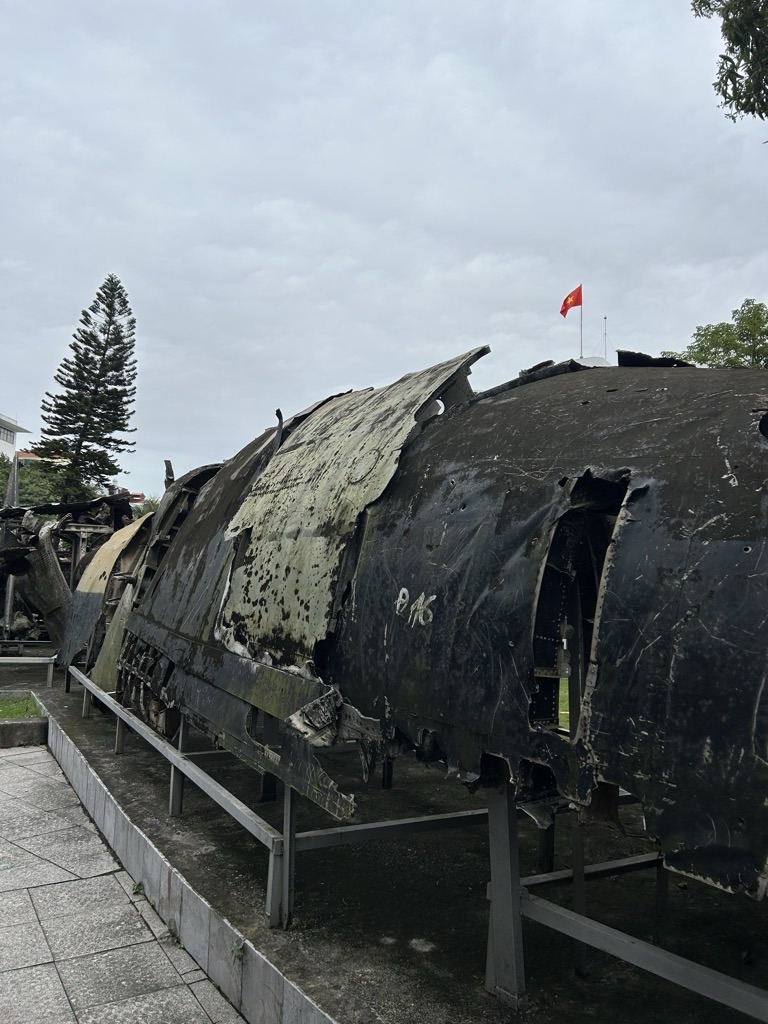 Weiter geht’s bei einem Abstecher zum Militärmuseum, um den dort davor aufbewahrten Schrott vom im Vietnamkrieg abgeschossenen US-Bomber B52 anzusehen. Unser Reiseführer Thang - geboren 1959 - ist sichtbar stolz, dass man mit guter sowjetischer Technik dem Feind entsprechend zusetzen konnte. Die Volksrepublik Vietnam hat heute noch mit den Folgeschäden von Agent Blue und Orange zu kämpfen; noch immer gibt es Langzeitschäden bei den damals betroffenen Menschen und mehreren nachfolgenden Generationen.