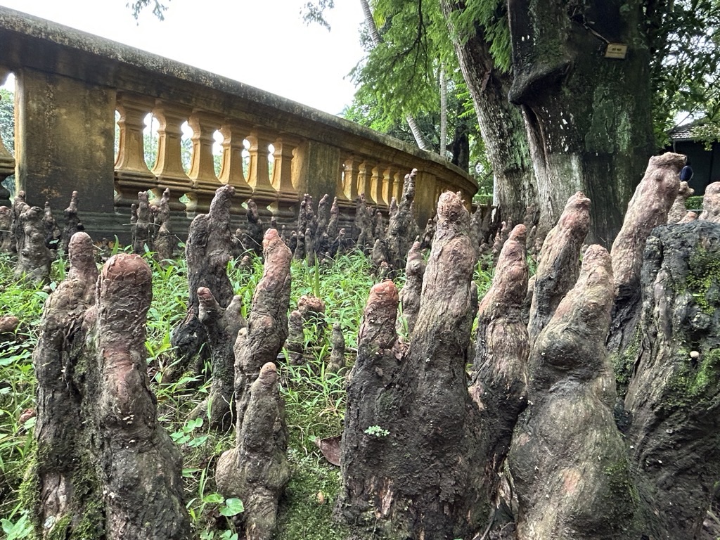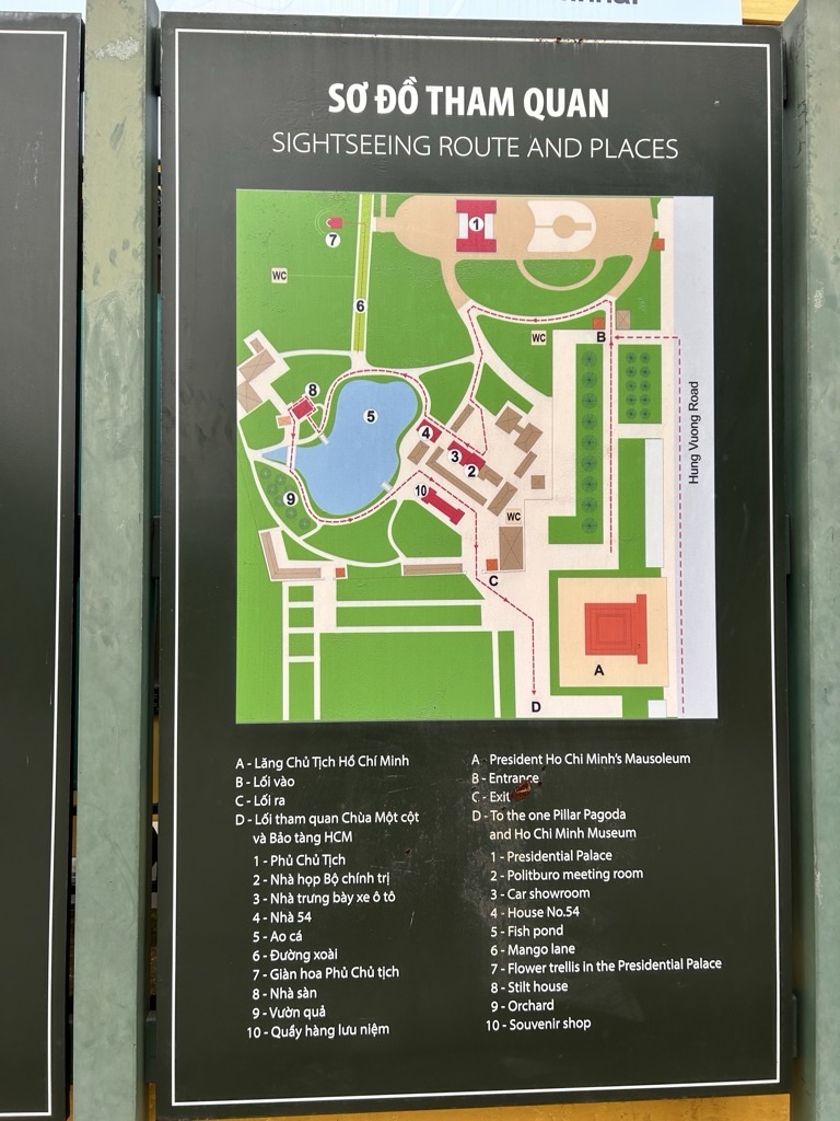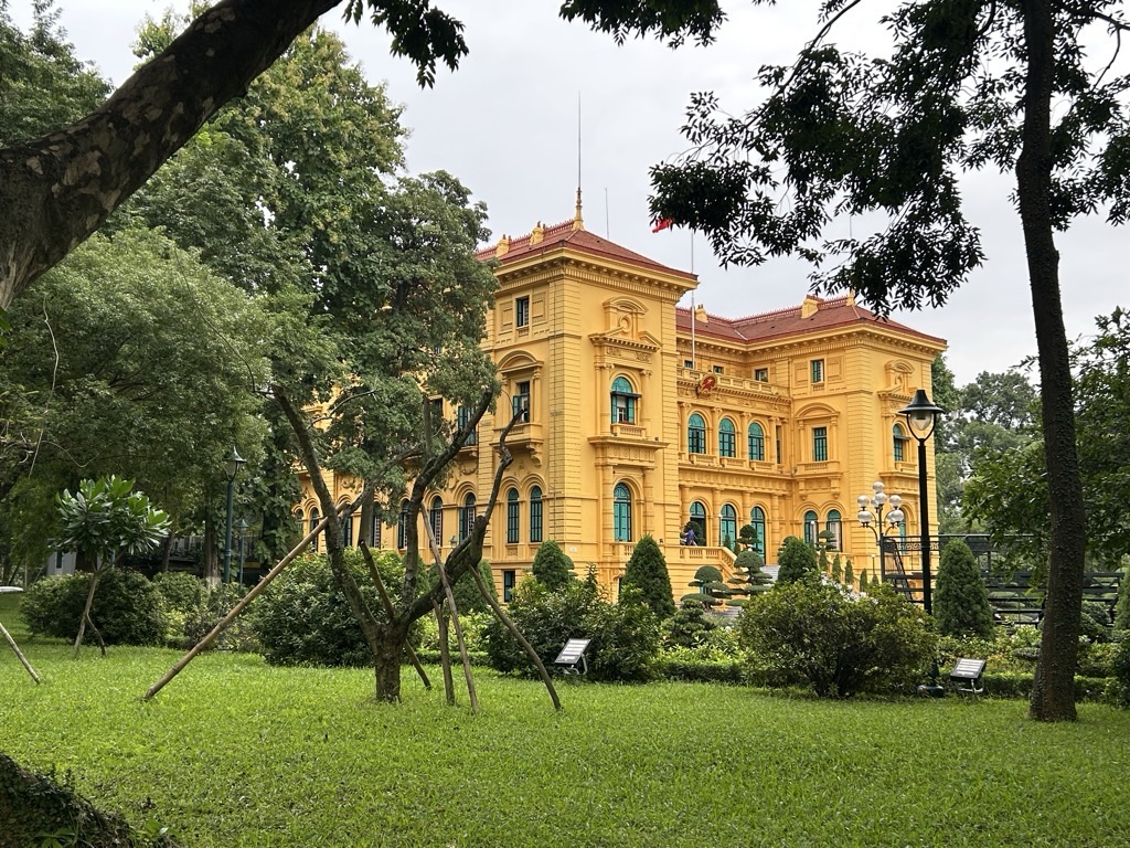 Wieder draußen kann man sich den alten, noch von den Franzosen erbauten Präsidentenpalast und die beiden bescheidenen Wohnhäuser Onkel Hos von außen ansehen und durch den hübsch angelegten Garten spazieren - ein Kontrast zum Mausoleum und dem davorliegenden Appellplatz. Ho Chi Min war ein absolut bescheidener Mensch, von dem sich manch heutiger Politiker was abschauen könnte…
