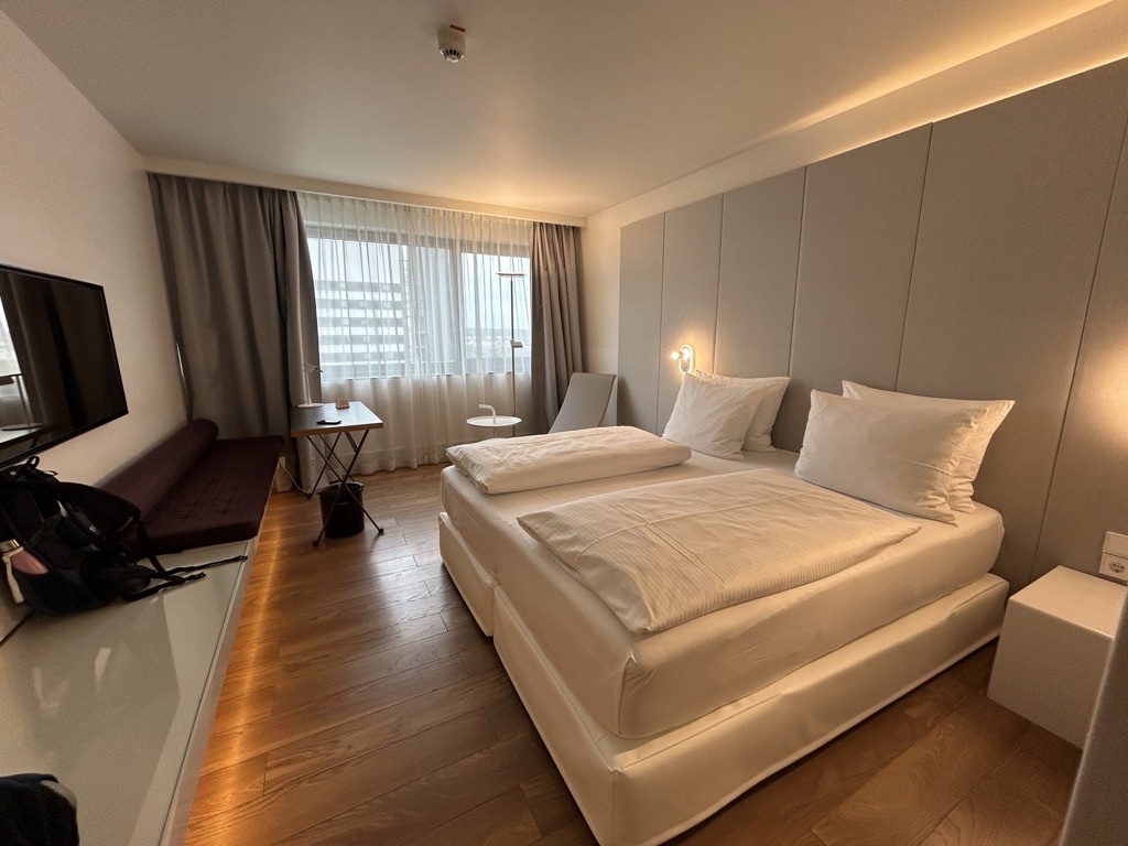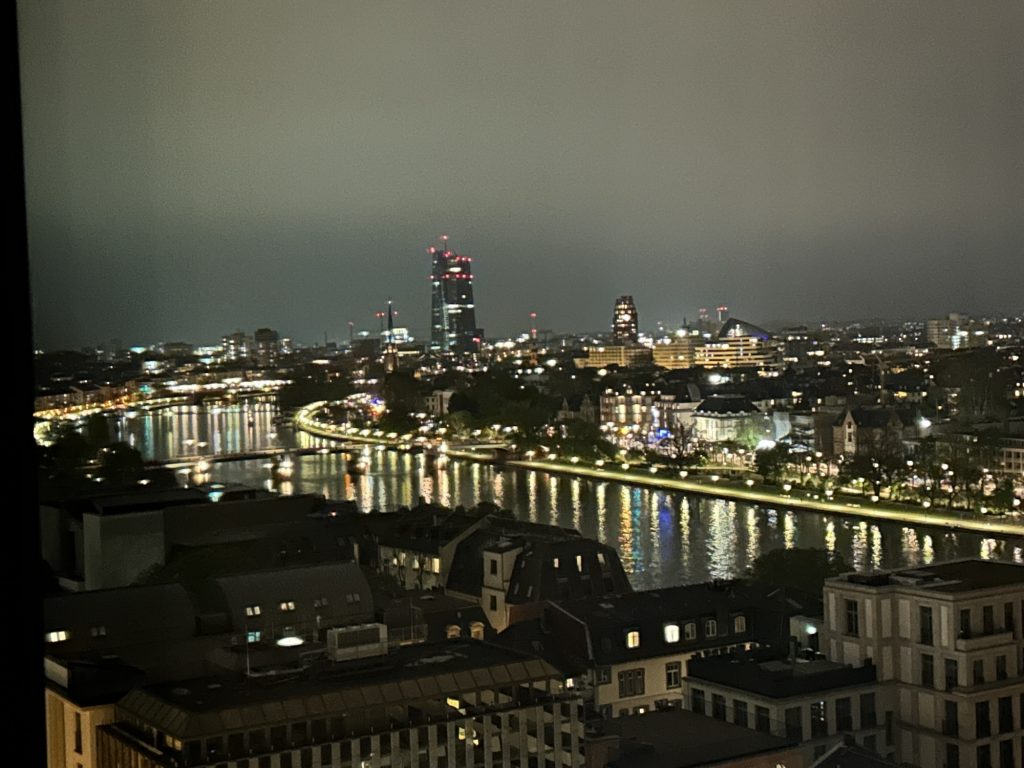 Die Anreise erfolgte auch dieses Mal am Vortag mit dem Zug nach Frankfurt – sehr pünktlich mit unter 10 Minuten Verspätung -, wir haben wieder dasselbe Scandic Hotel gebucht, wieder ein Zimmer im 19. Stock bekommen und einen netten Blick auf den Main. Den Nachmittag haben wir gemütlich bei einer Dampferfahrt auf dem Main ausklingen lassen.