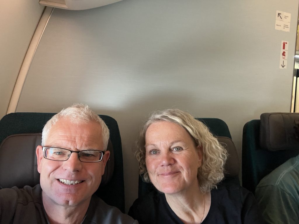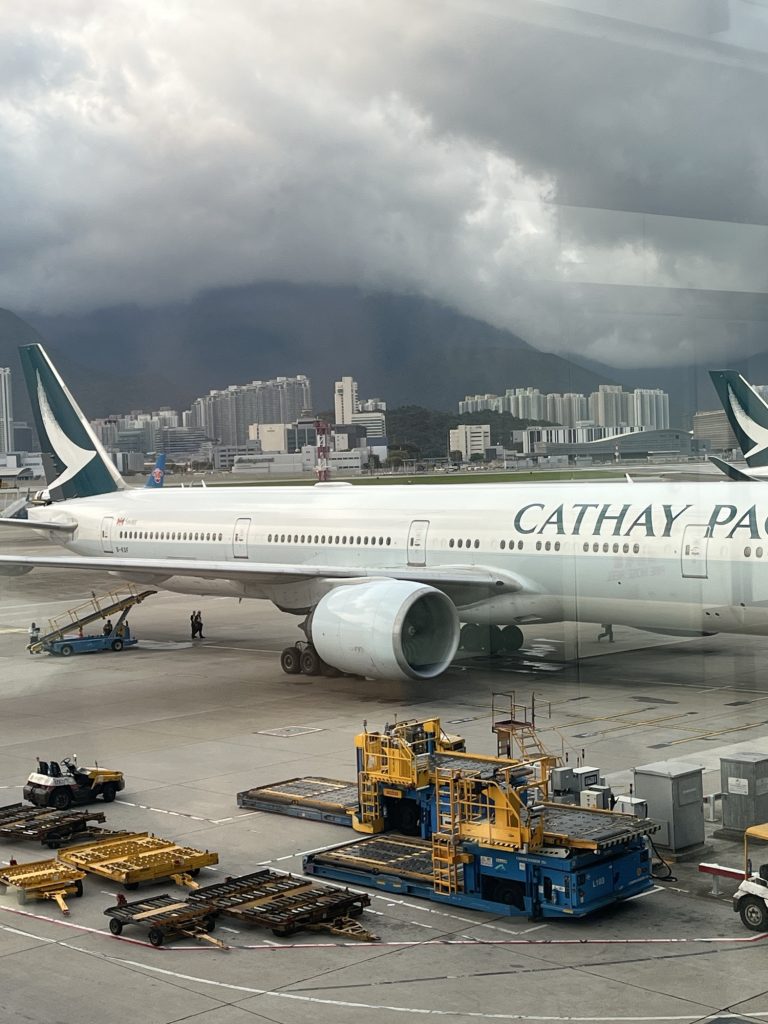 …dauert schon seine Zeit. Am Dienstag, den 14.04. sind wir ab Frankfurt gestartet und haben den ersten Flug mit etwas über 11 Stunden Dauer nach Hongkong hinter uns gebracht. Cathy Pacific kann man als Airline empfehlen, auch wenn man als „Gruppentourist“ der TUI keine Optionen wie z. B. Premium Economy buchen konnte. Aber auch so ist die Zeit vergangen und so sind wir gegen 7.30 Uhr Ortszeit bei 6 Stunden Zeitverschiebung in Hongkong gelandet. Der Flughafen Hongkong ist schon sehenswert, sehr modern, 530 Gates und riesige Entfernungen, die mit einem autonom fahrenden Zug überwunden werden. Bei 90 Minuten Umsteigezeit scheint es sehr knapp zu werden, aber es ist so perfekt ausgeschildert, dass man sich ohne Mühe zurechtfinden kann.
