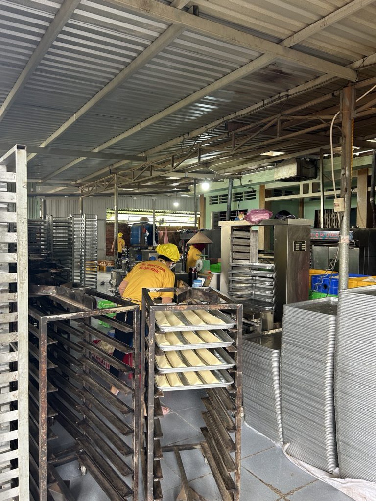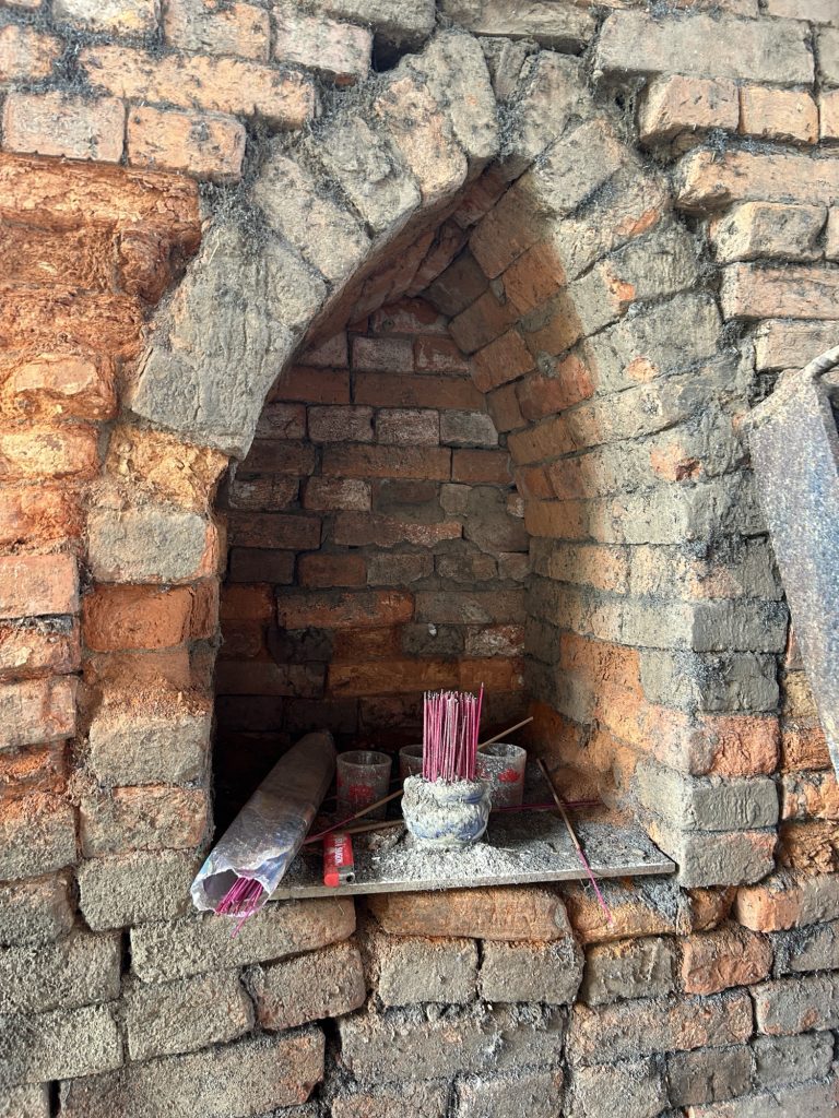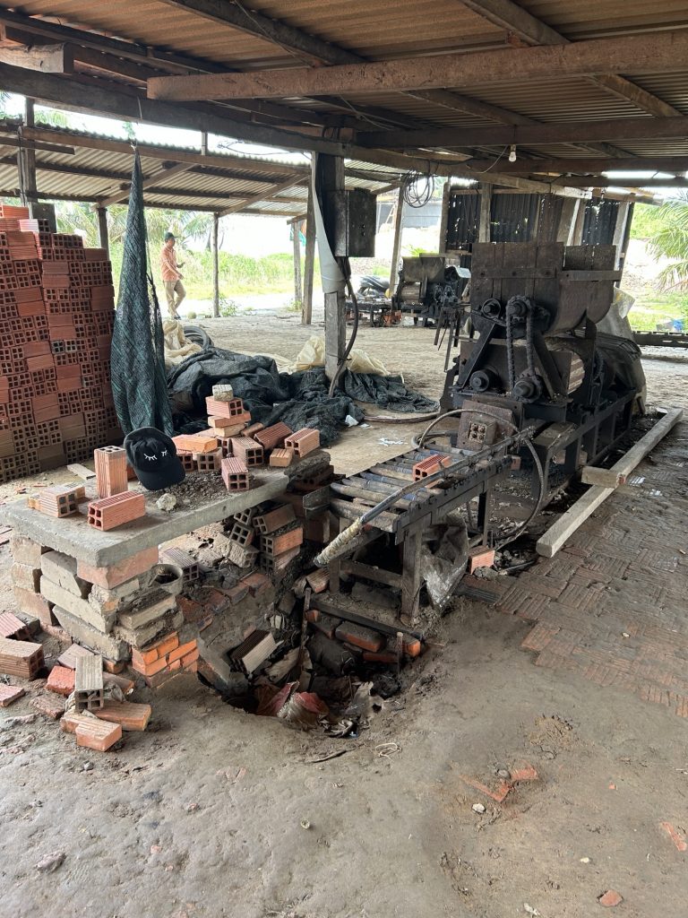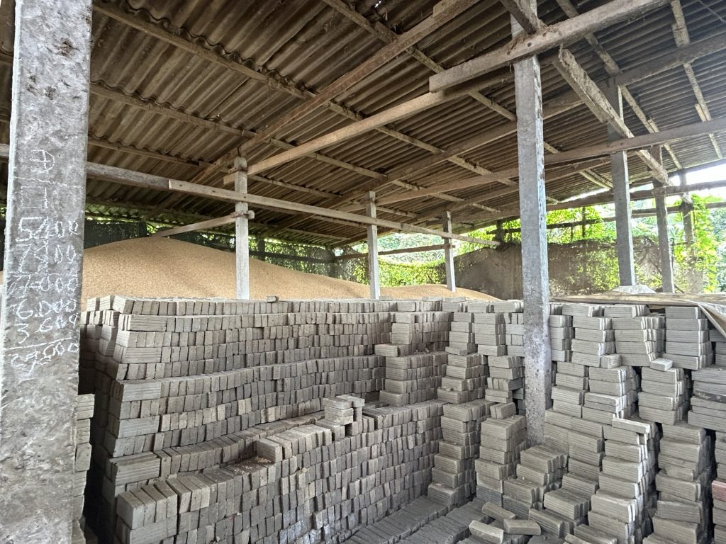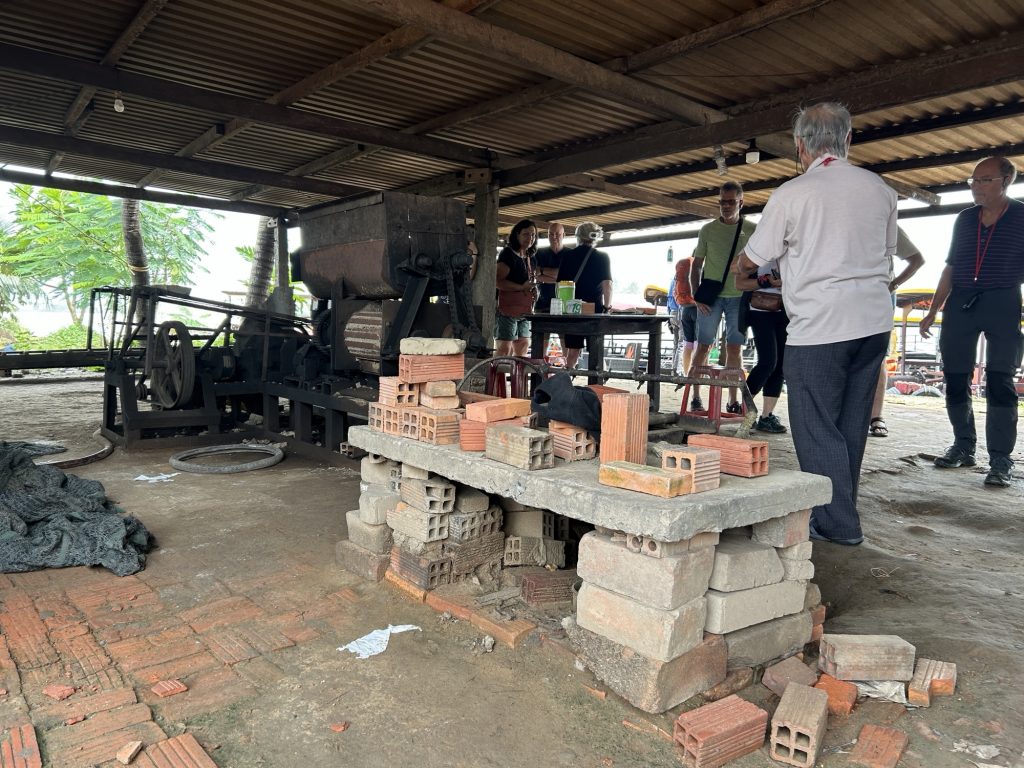 Zunächst ging es mit dem Bus in Richtung Süden zum Mekong. Nach ca. 2,5 Stunden Fahrt hatten wir das Ziel für die heutigen Ausflugsaktivitäten erreicht. Zunächst ging es über abenteuerliche Wege vorbei an einer Kokosnusskuchenbäckerei zu einem Motorboot. Dieses brachte uns zu einer Ziegelei - eine letzte, die noch mit Reisschalen als Brennmaterial für die Ziegelherstellung arbeitet.