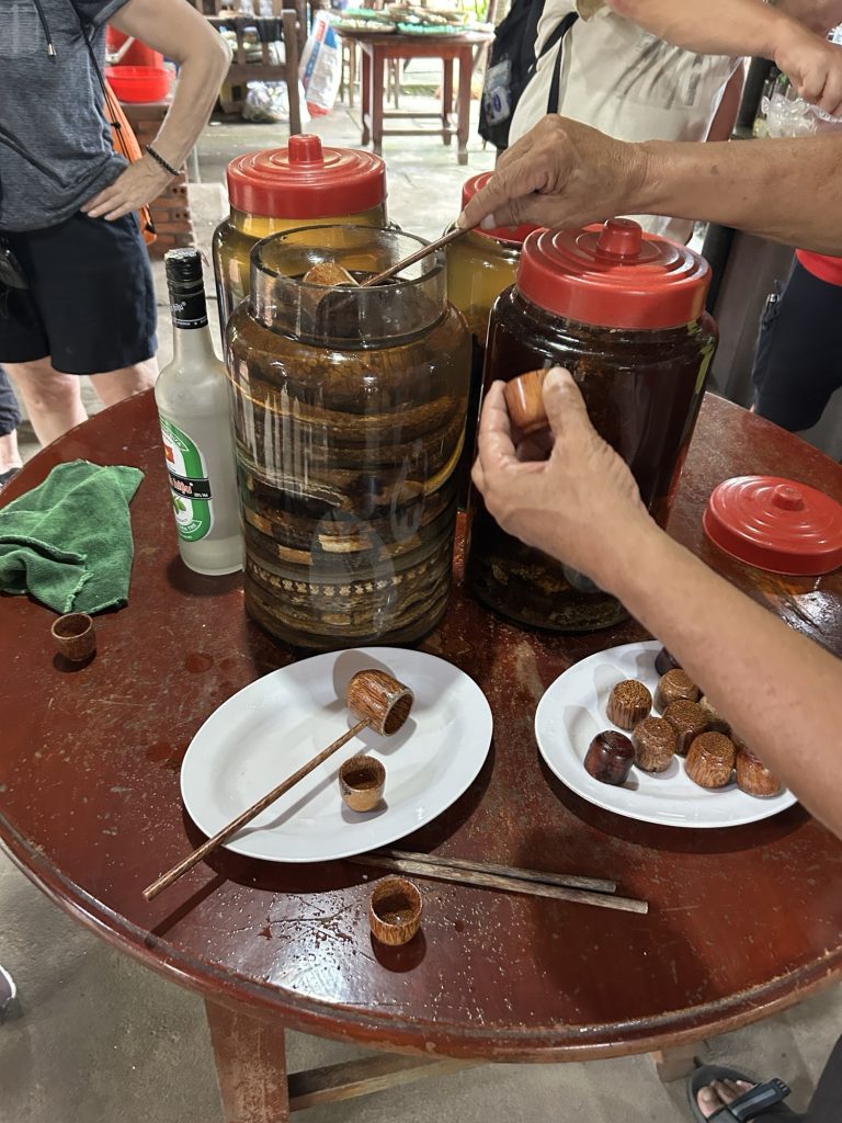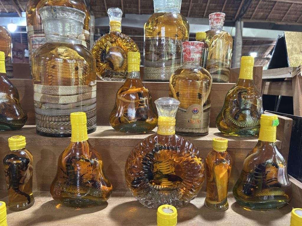 Auf die in Schnaps eingelegten Reptilien haben wir als Mitbringsel verzichtet, aber probiert habe ich den Schnaps schon. Thomas fürchtet sich ja ein bisschen vor so seltsamen Sachen, aber ich kenne das ja eher nicht…😉