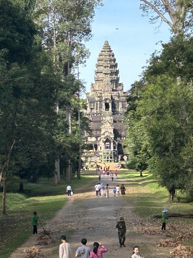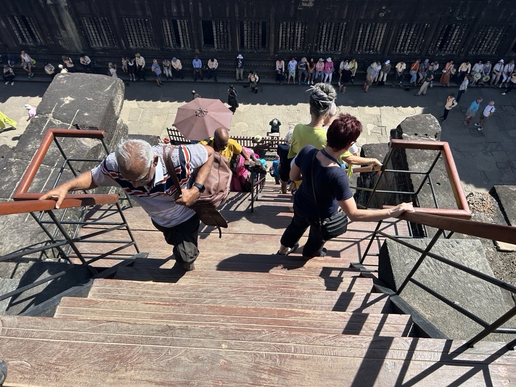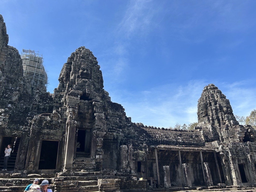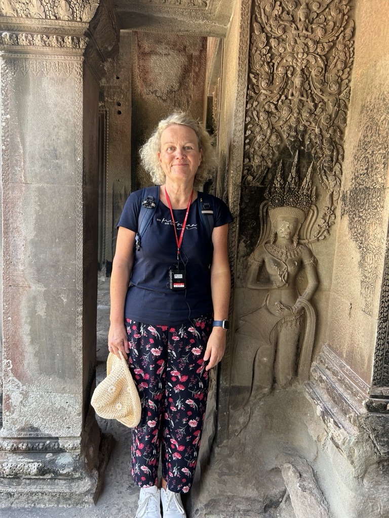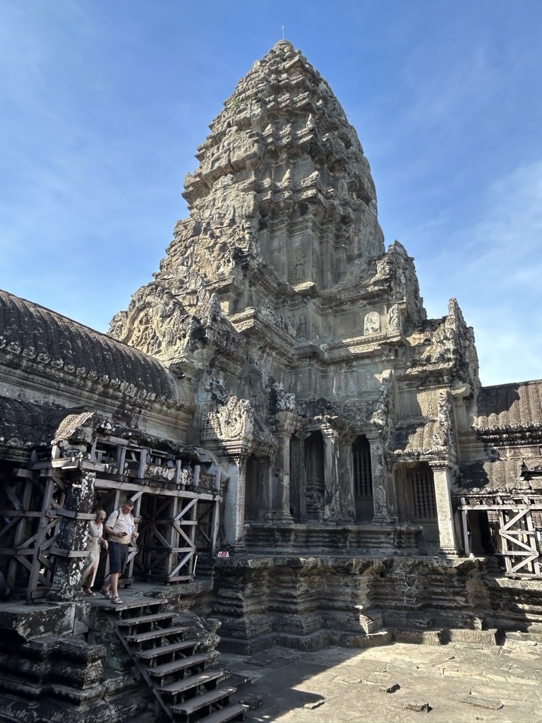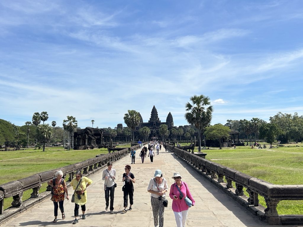 Heute, am 24.11.24 standen insgesamt 3 Tempelanlagen auf dem Programm.  Pünktlich um 8.00 Uhr ging es los - unser neuer Reiseleiter Kim nahm uns in Empfang und es ging zunächst zum wohl bekanntesten Tempel Angkor Wat. Die Anlage ist riesig und es gibt viele verschiedene Tempelbauwerke zu sehen. Aufgrund des straffen Tagesprogramms und der doch großen Wärme hat Thomas entschieden, heute doch nicht mitzukommen, sondern stattdessen den Tag am Pool zu verbringen und erst zur abschließenden Gondelfahrt zu uns zu kommen.