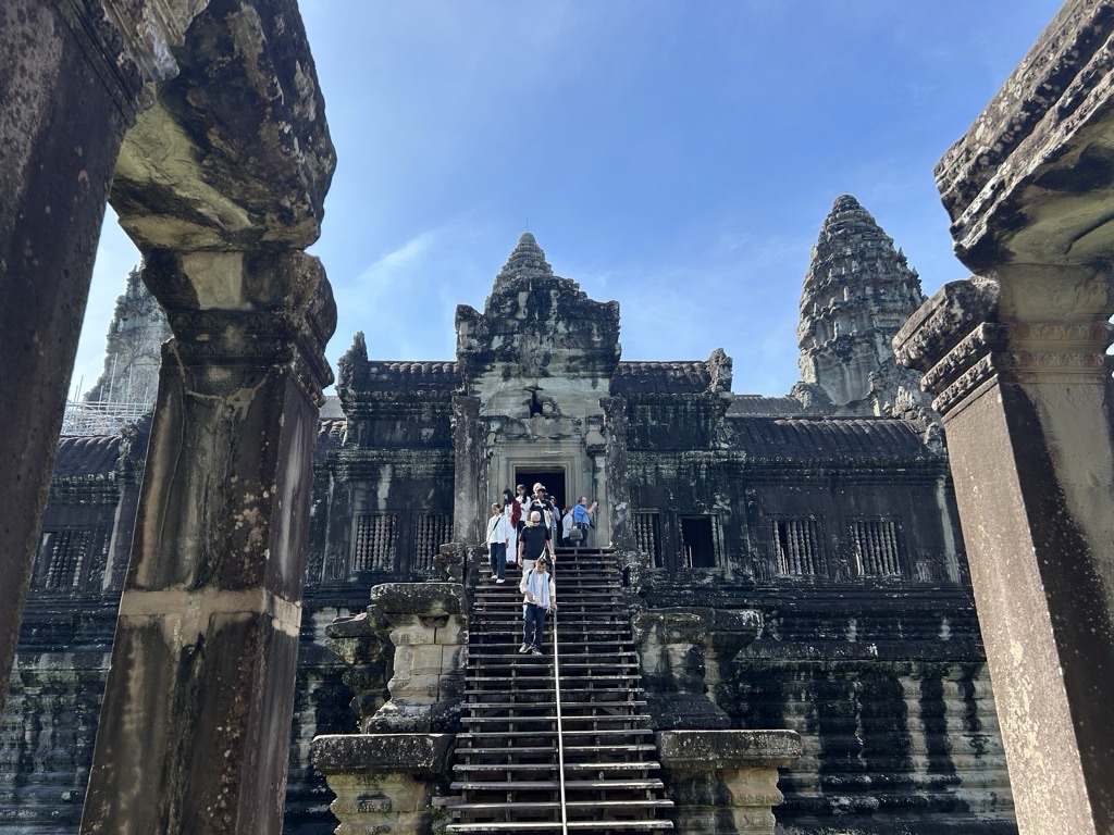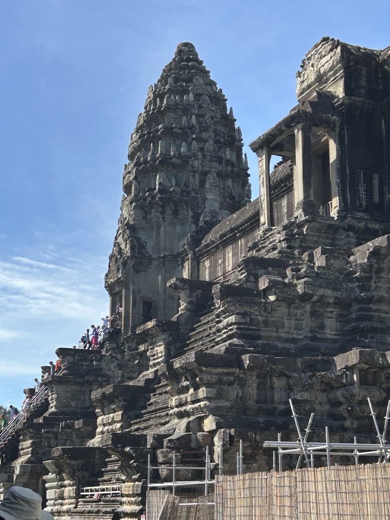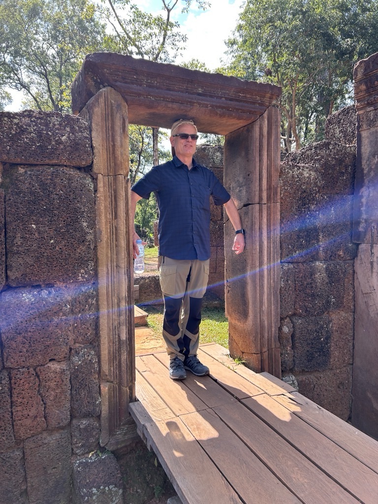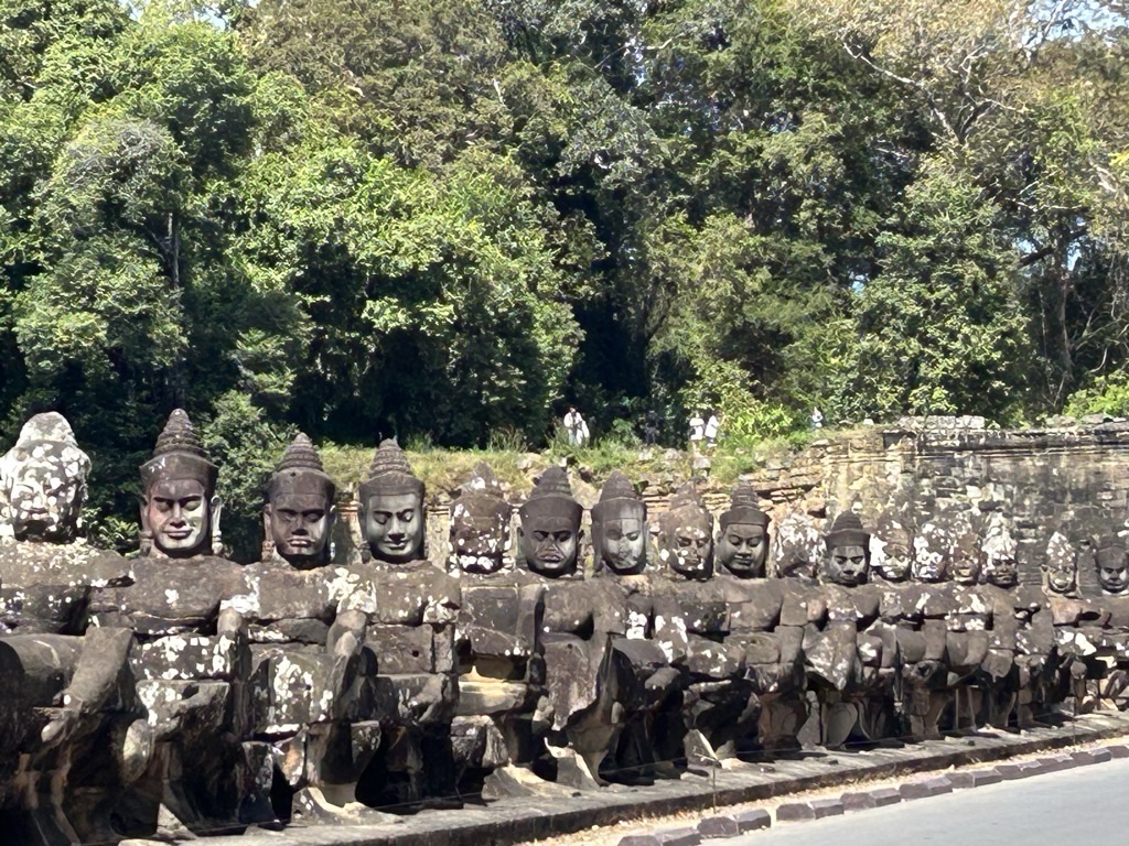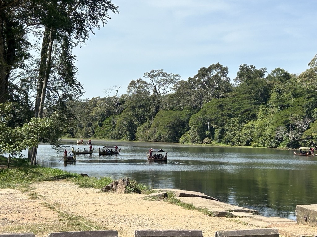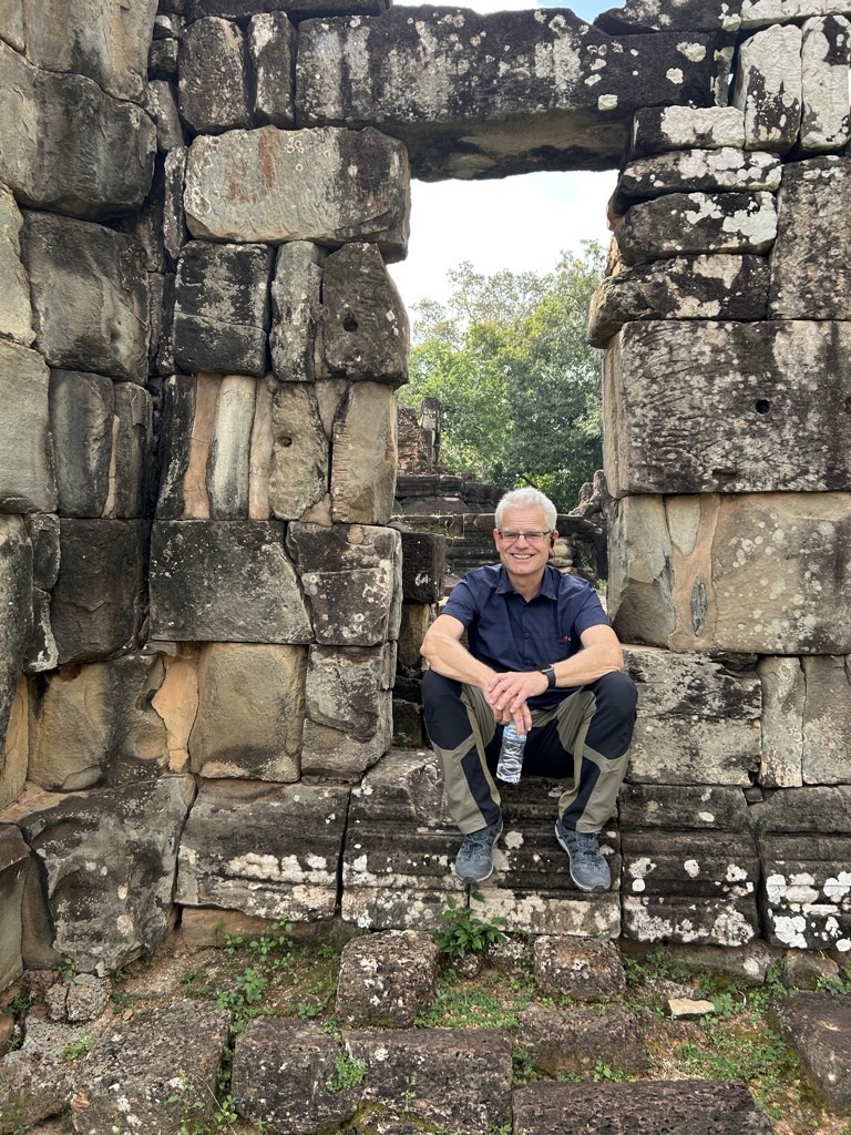 Heute, am 24.11.24 standen insgesamt 3 Tempelanlagen auf dem Programm.  Pünktlich um 8.00 Uhr ging es los - unser neuer Reiseleiter Kim nahm uns in Empfang und es ging zunächst zum wohl bekanntesten Tempel Angkor Wat. Die Anlage ist riesig und es gibt viele verschiedene Tempelbauwerke zu sehen. Aufgrund des straffen Tagesprogramms und der doch großen Wärme hat Thomas entschieden, heute doch nicht mitzukommen, sondern stattdessen den Tag am Pool zu verbringen und erst zur abschließenden Gondelfahrt zu uns zu kommen.