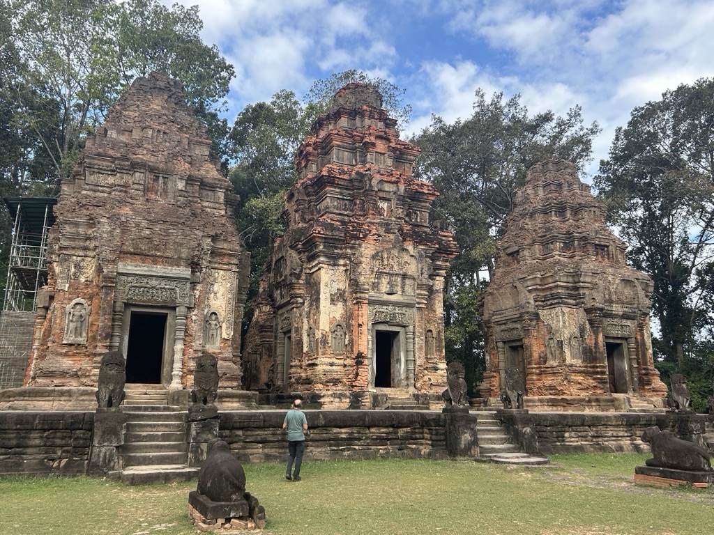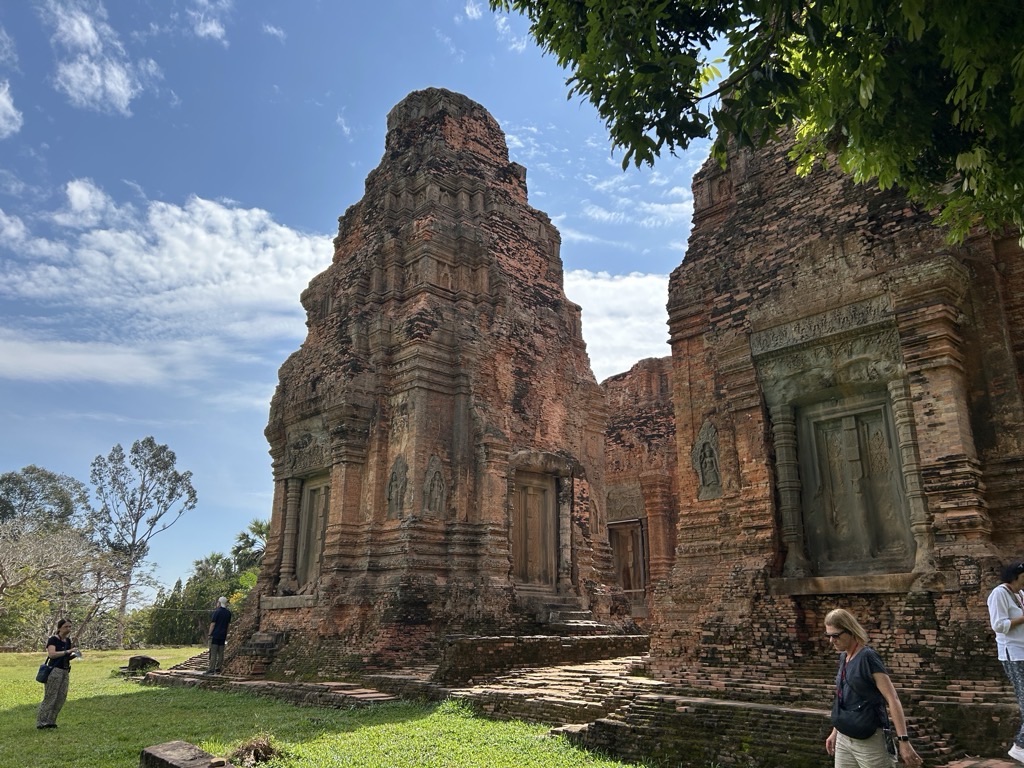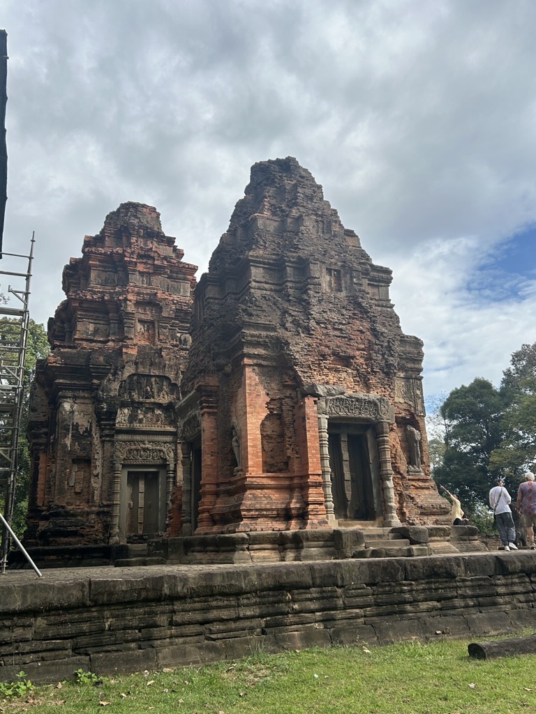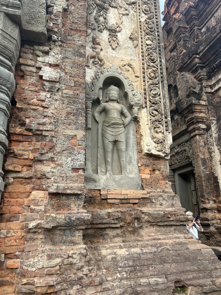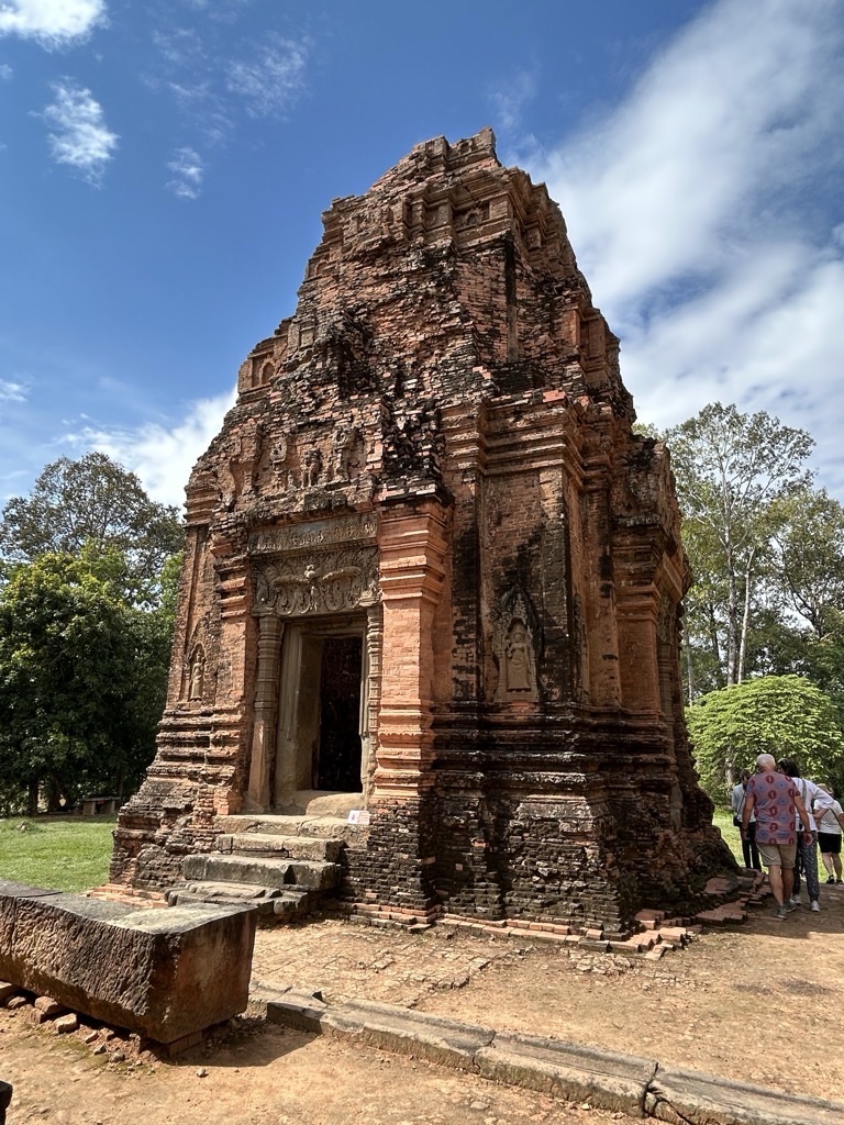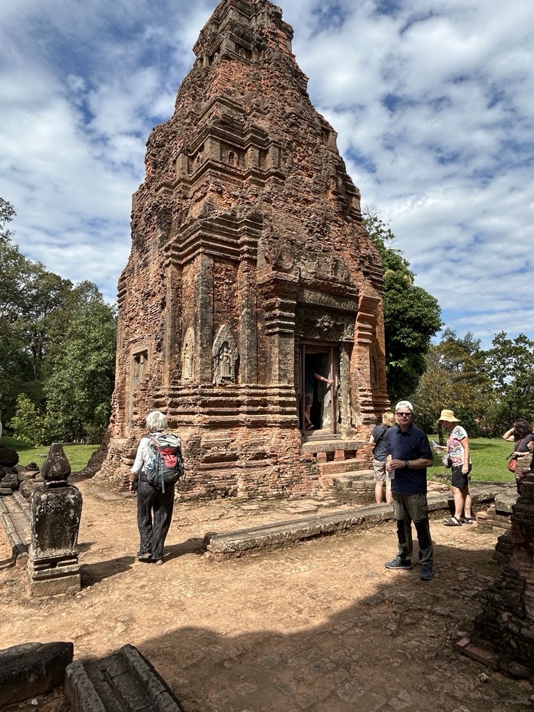 Heute am 25.11.25 gibt es noch einmal 3 Tempel und ein Kloster zu besichtigen. Pünktlich um 8.00 Uhr geht’s, leicht sehnsüchtig auf den Pool blickend, los - so ist da eben bei Reisen mit festem Programm.  Der erste Tempel Preah Ko wurde im 9. Jahrhundert gebaut, näheres zur Geschichte ist dem www zu entnehmen… Die Bauweise war etwas anders als bei den gestern besichtigten, denn hier hat man zusätzlich zu den anderen Baumaterialien auch gebrannte Ziegel verwendet.