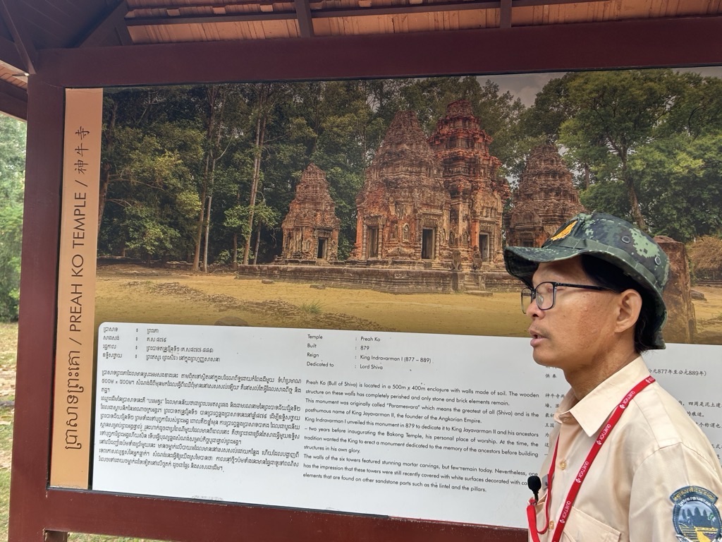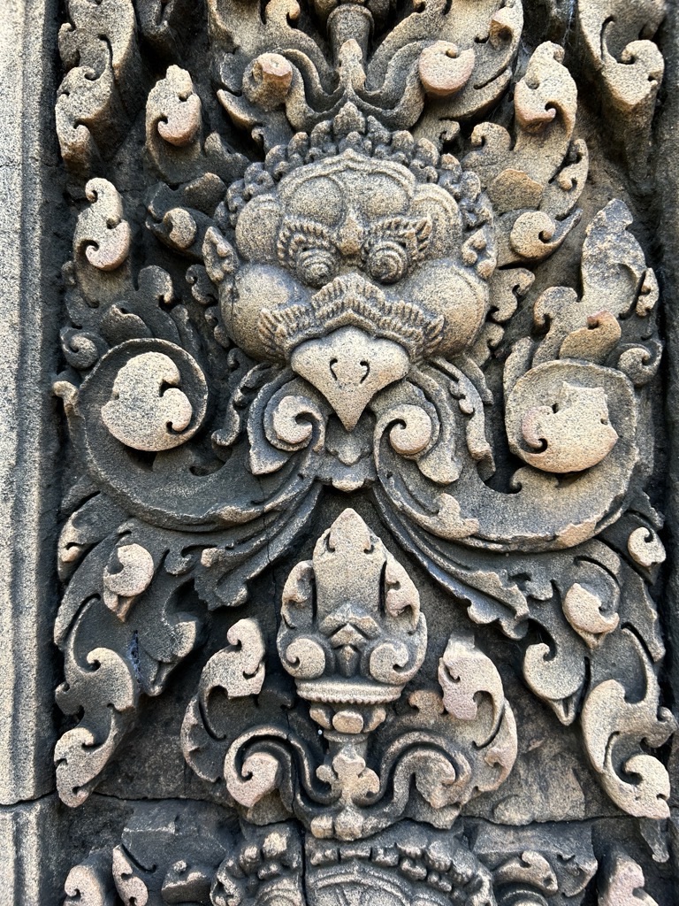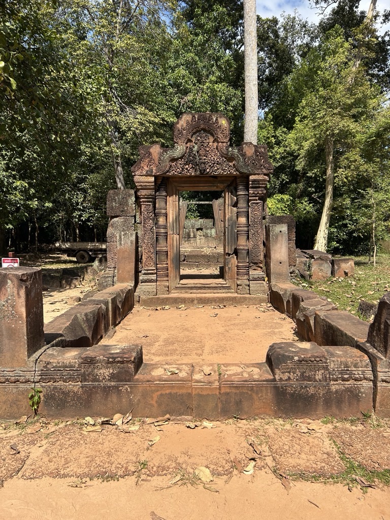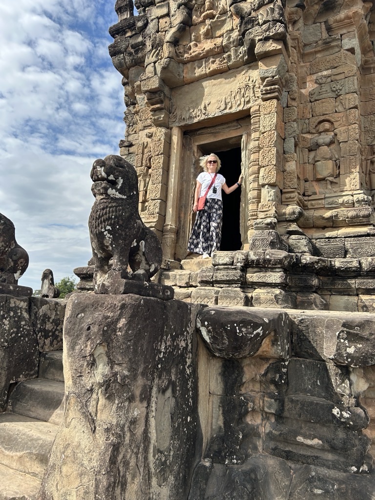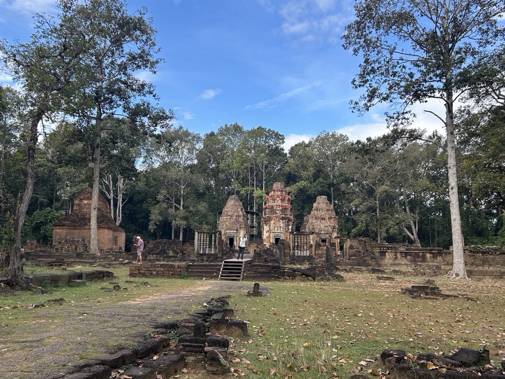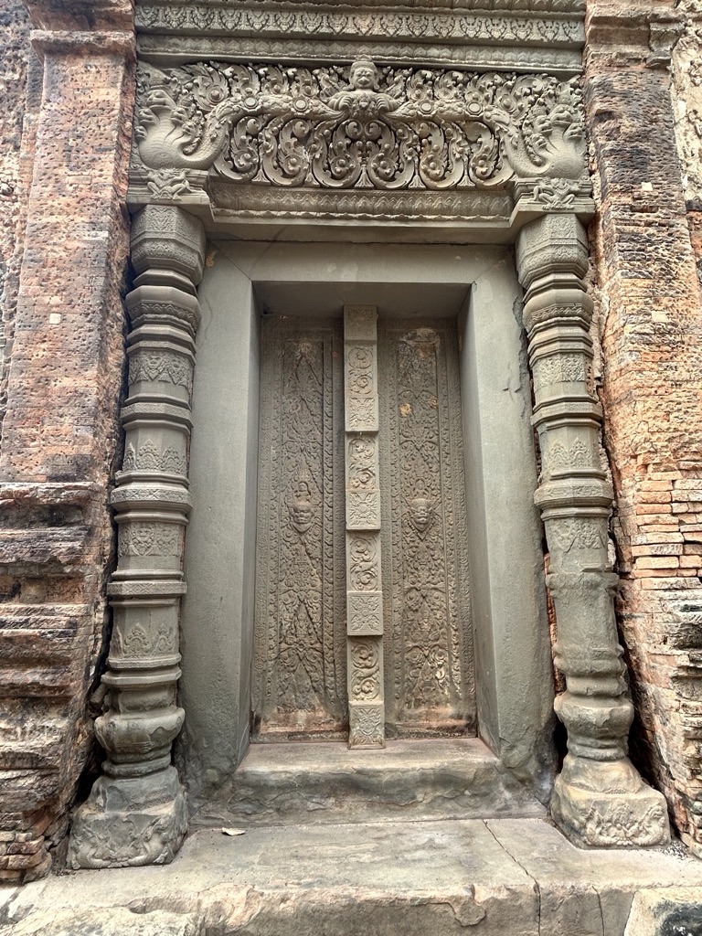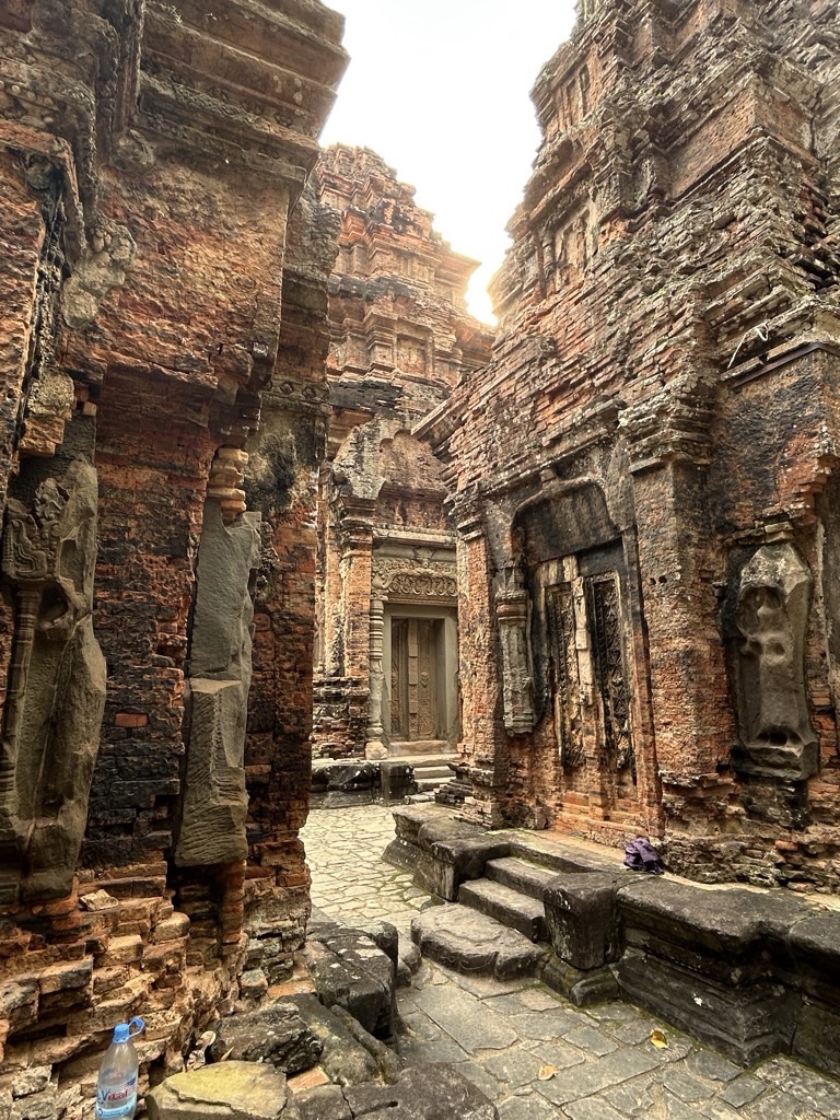 Heute am 25.11.25 gibt es noch einmal 3 Tempel und ein Kloster zu besichtigen. Pünktlich um 8.00 Uhr geht’s, leicht sehnsüchtig auf den Pool blickend, los - so ist da eben bei Reisen mit festem Programm.  Der erste Tempel Preah Ko wurde im 9. Jahrhundert gebaut, näheres zur Geschichte ist dem www zu entnehmen… Die Bauweise war etwas anders als bei den gestern besichtigten, denn hier hat man zusätzlich zu den anderen Baumaterialien auch gebrannte Ziegel verwendet.