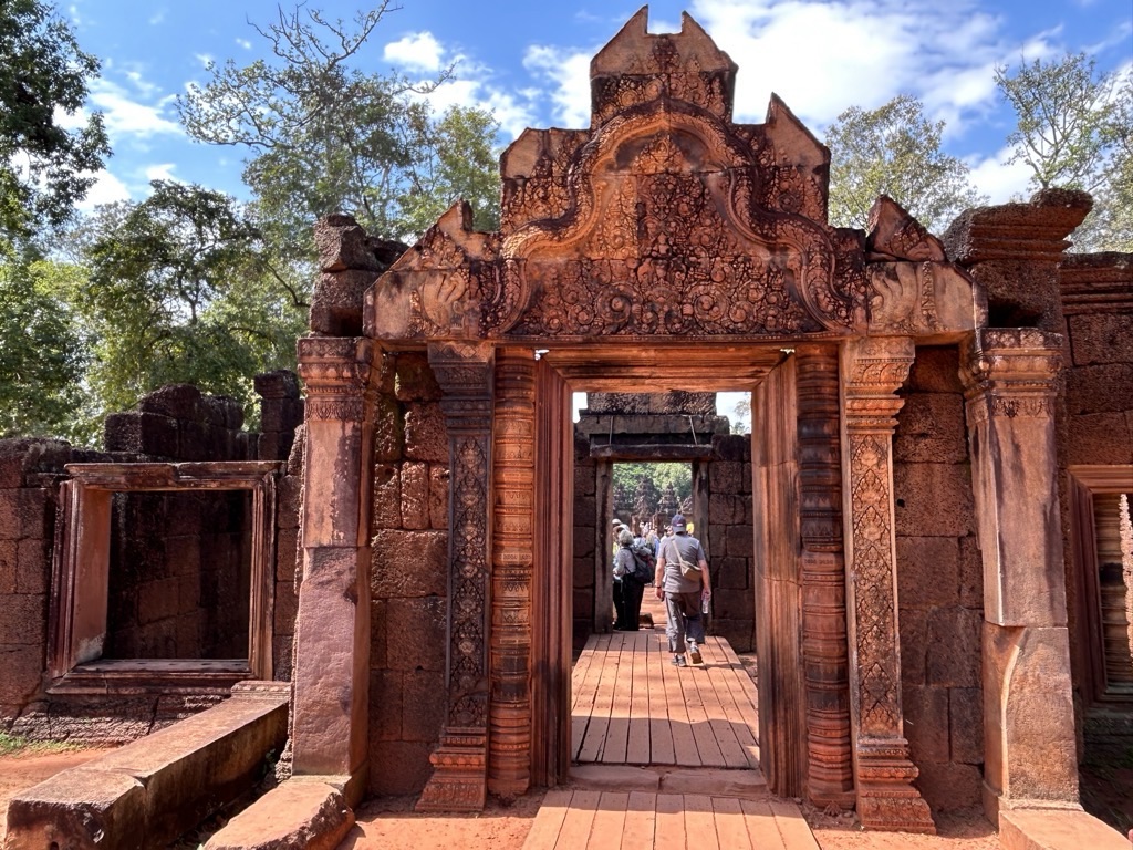 So, einer geht noch - der Banteay Srei Tempel. Diese Anlage ist ebenso sehenswert und beeindruckt mit viel Detail der Steinmetzkunst früherer Jahrhunderte. Es ist immer wieder verblüffend, dass dieses riesige Gebiet mit hunderten Tempeln für Jahrhunderte in Vergessenheit geraten ist. Müssen wir später auch noch mal im Reiseführer nachlesen, denn die viel Informationen des Reiseleiters kann man sich nicht merken…😉