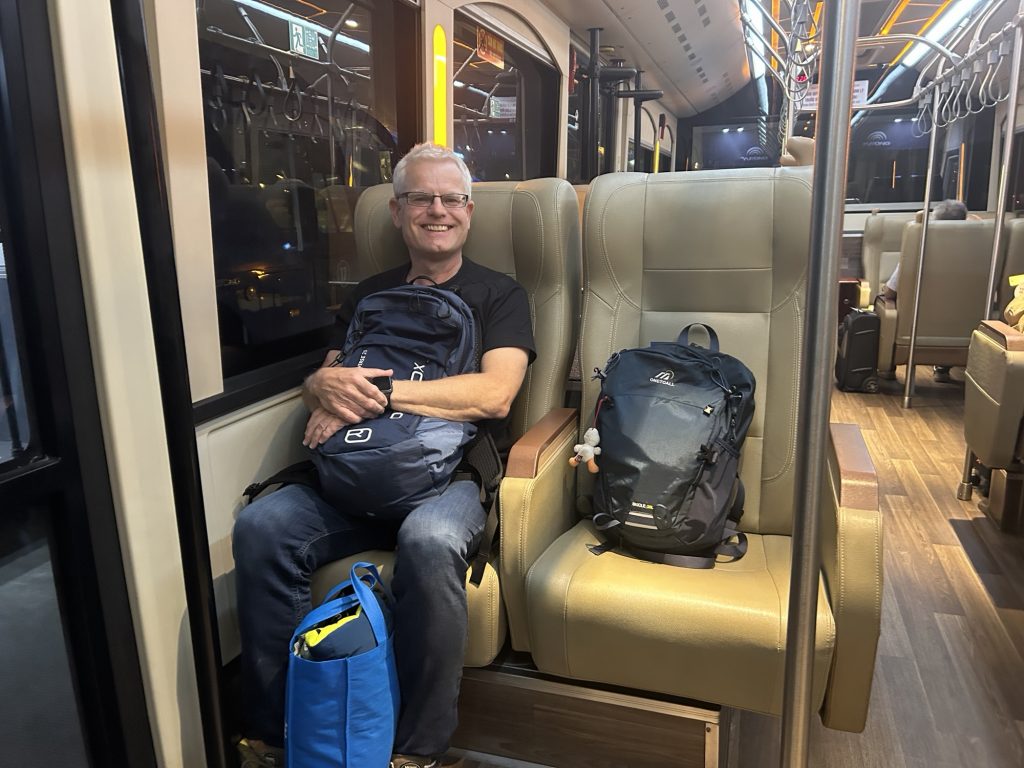 Als Business-Passagier hatten wir sogar einen eigenen Bus ( für 15 Passagiere!) und für den Transit gab’s ein extra Klebchen - so ein Unfug! 🫡